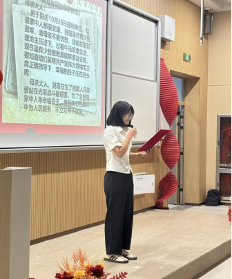 活动以“诵读红色家书”作为首个环节开场,由陈子宜、陈红梅、王煜宇、舒梓雅、徐文希、杨艺、赵一丹等同学组成的诵读团依次登台,他们手持泛黄的家书文稿,或深情款款,或慷慨激昂,将文字背后鲜活的生命与情感淋漓尽致地展现出来,让这些沉睡在历史中的文字重新焕发生机。