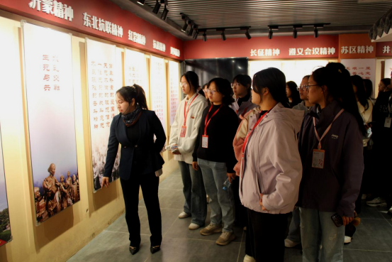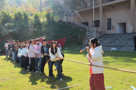 次日,为深化红色精神学习,讲解员带领师生走进九瀑峡中的中国精神展示馆。在引导下,大家聆听革命故事,感悟先辈信念与奋斗精神,井冈山精神、长征精神等诸多精神内涵被生动呈现;参观后,师生在馆外草坪参与拔河为主的素质拓展,增进协作与情谊。