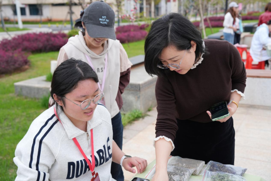 活动期间,校团委副书记赵蕾、学工处副处长王磊、药学院党委副书记刘永飞逐一参观各展区,与师生亲切交流,细致了解活动开展情况与学子参与感受。各位领导对展会创新融合传统文化与专业教育的形式给予高度肯定,指出此次活动是学校落实文化育人、实践育人理念的生动实践,既丰富了校园文化生活,更厚植了学子的中医药文化自信。领导们勉励同学们以此为契机,深耕专业知识,传承本草文脉,争做中华优秀传统文化与中医药文化的践行者、弘扬者。